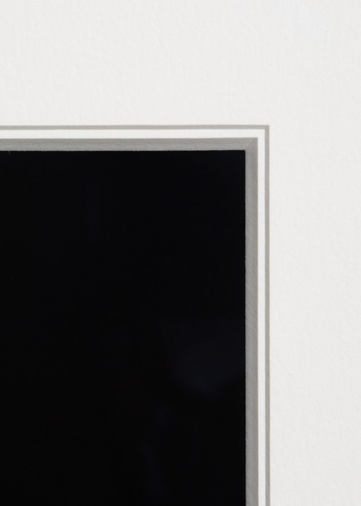 また額縁と呼応するように、マットは下に3mm厚、その上に1mm厚のボードを重ねたダブルマット仕様になっています。縁取りをイメージし、下マットの見える幅を細くすることでシャープな中にも奥行きが生み出され、作品をより引き立たせています。