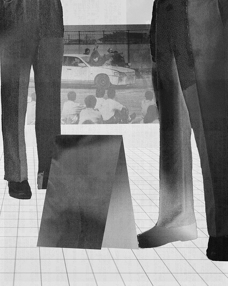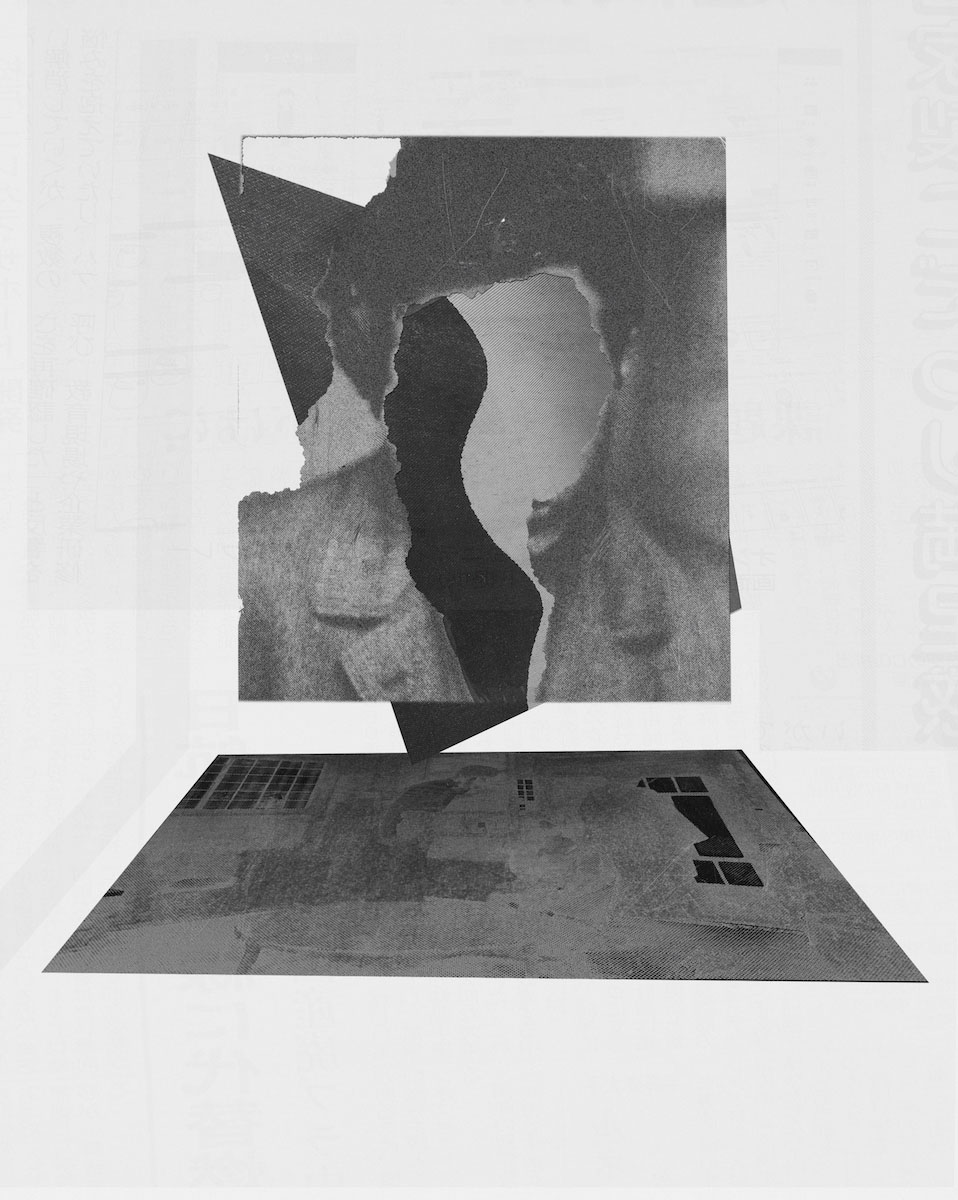 いくつかの写真を切り出して、テクスチャを操作して合成し、不自然な遠近感の空間を作り出す。
