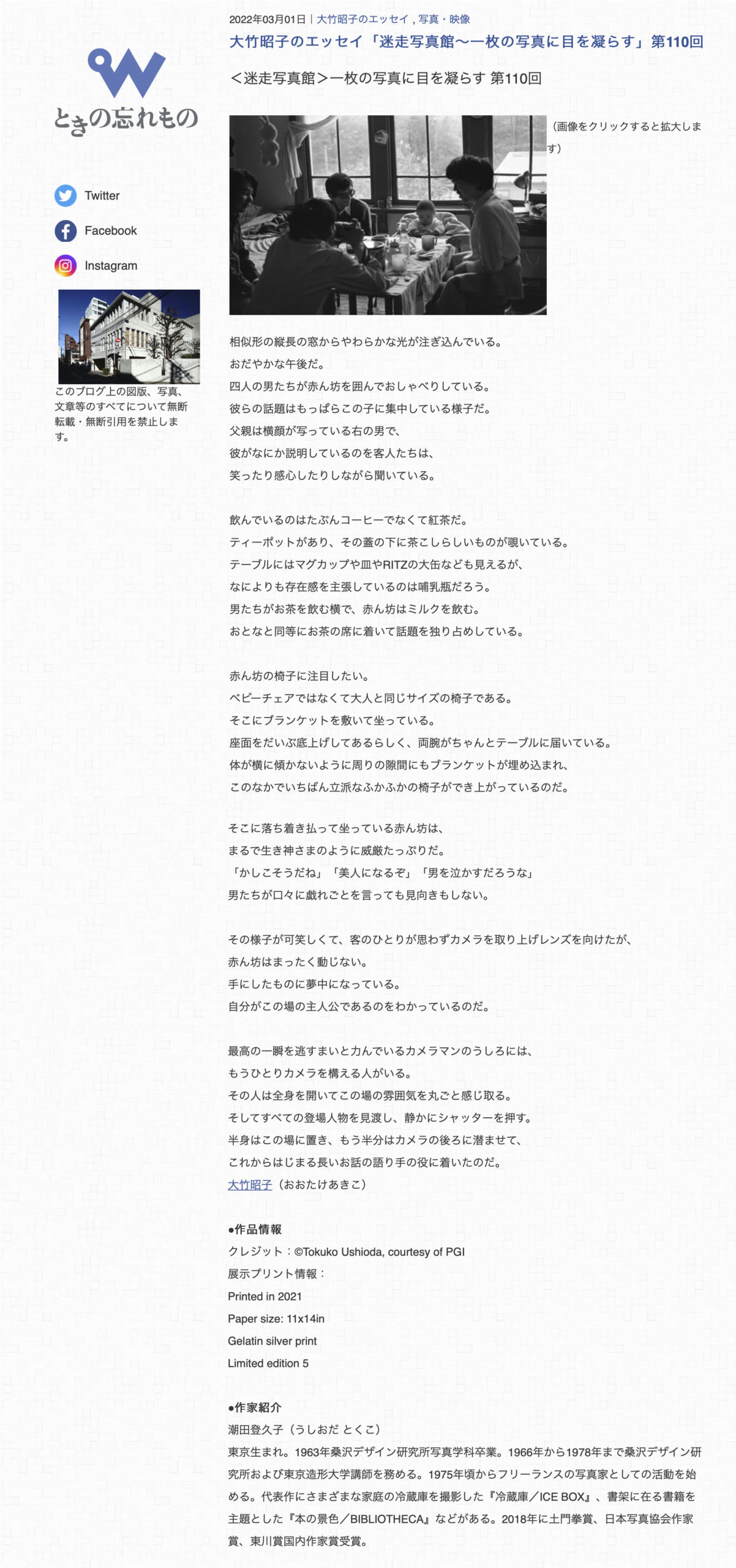 ときの忘れもの 「大竹昭子のエッセイ『迷走写真館~一枚の写真に目を凝らす』第110回」