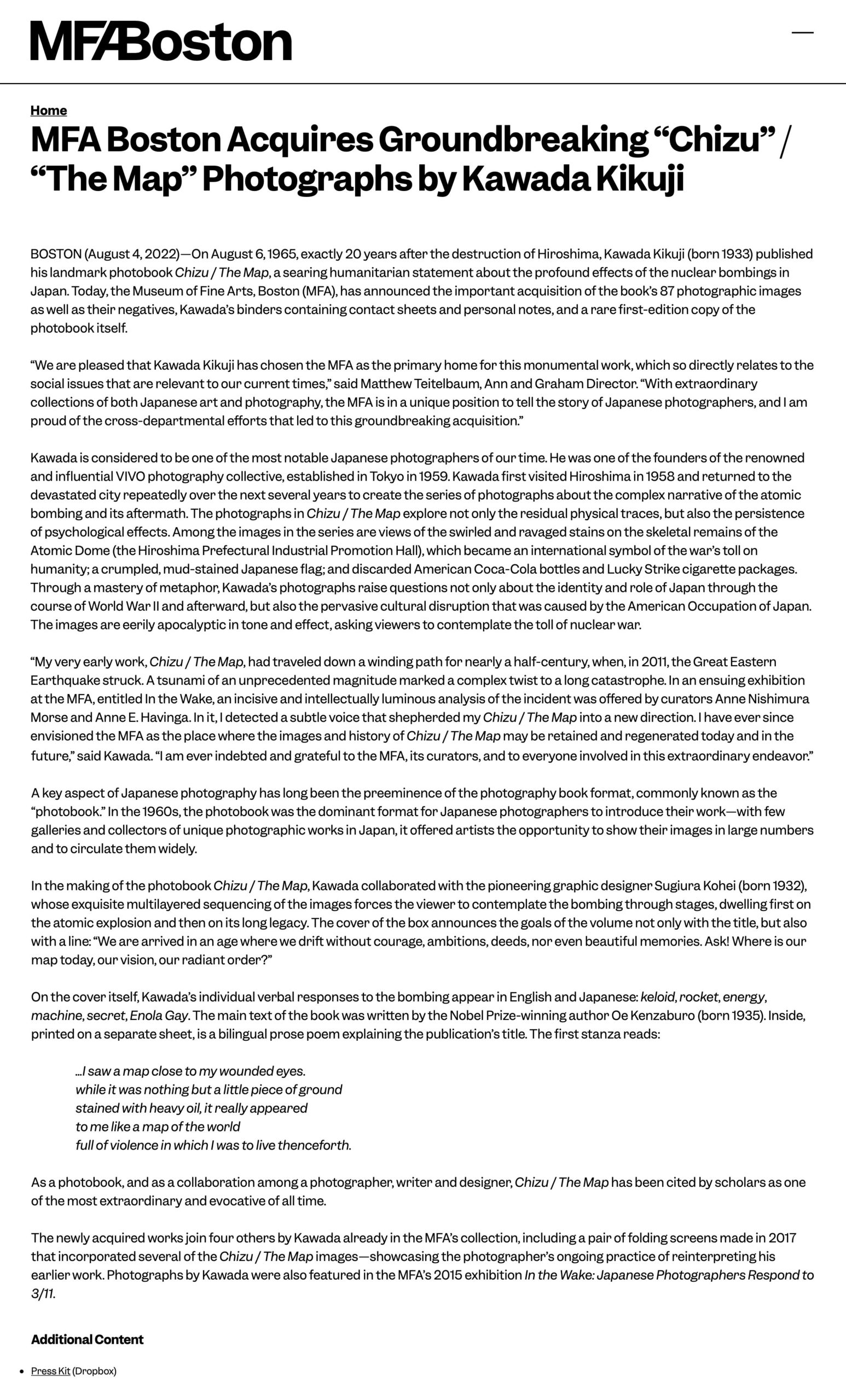MFABoston Press Release —MFA Boston Acquires Groundbreaking “Chizu” / “The Map” Photographs by Kawada Kikuji