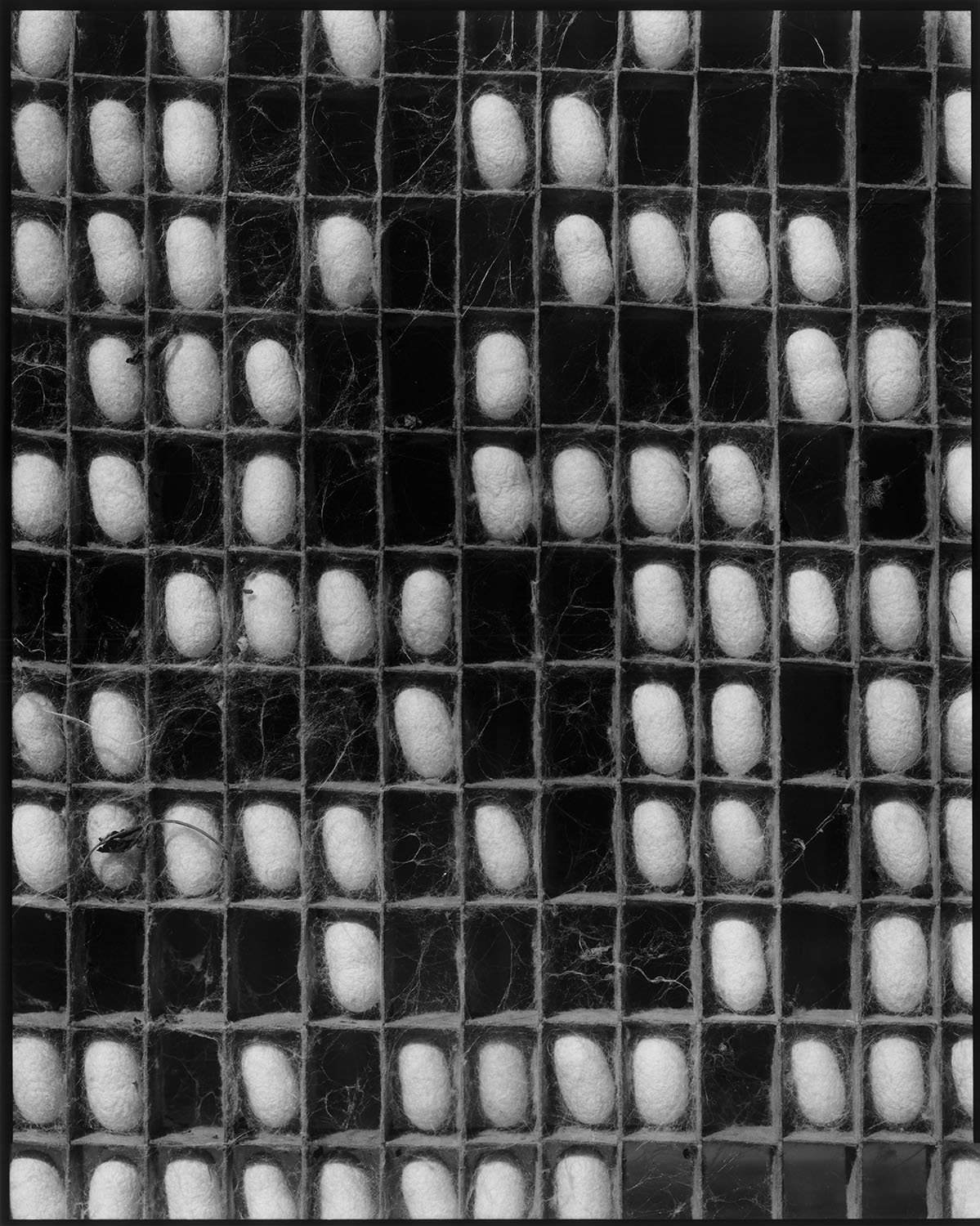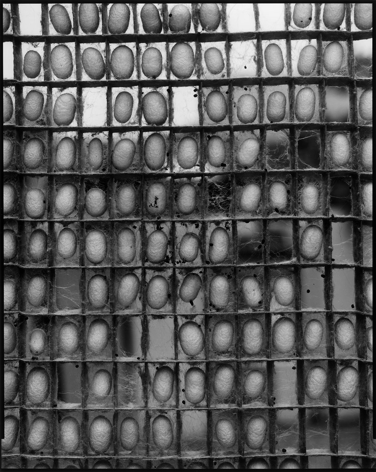 Off the highway, turning left on the crossroad where there is a corner store on the right-hand side and then heading straight through a punch bowl, this silkworm farm locates at the dead end closed by three sided hills. The tiled roofs decorate gable parapets and the eaves are doubled with storm doors. The Storm doors are equally spaced and paper screens can be seen through those gaps. There is a mulberry field in front of the trail; more than half of the trees are trimmed for spring, summer and autumn rearing, yet some of them still growing thickly, giving the landscape a neat ridge. With caution, I pull open the heavy wooden door in front of the white-walled storehouse near the annex. There, tens of thousands of cocoons rest inside hundreds of cocooning frames waiting to be harvested in the late fall. The silence of the rearing room broke as the afternoon sunlight began to tilt and a shrike chirped on the zelkova treetop. The landlord must have noticed my revisit; probably to offer on the altar, holding unseasonable dahlias in one hand and brushing off her headscarf with another, she stood there, her back facing the wooden door with a knowing look on her face.