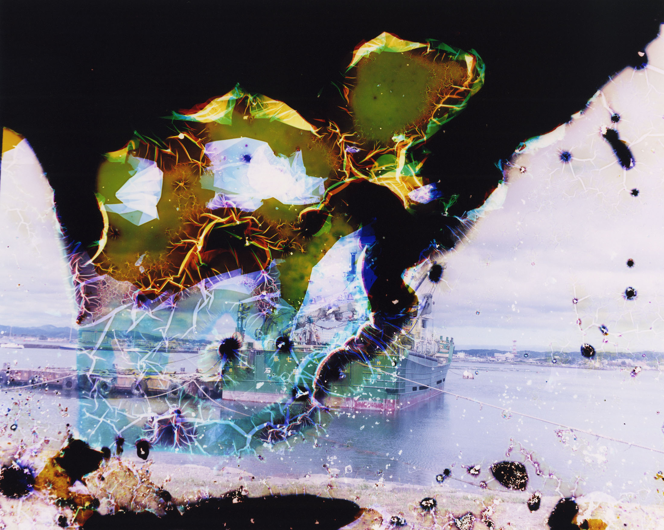 Surfacing will feature approximately twenty chromogenic prints created by the artist from negatives altered with seawater, sand, and mold.