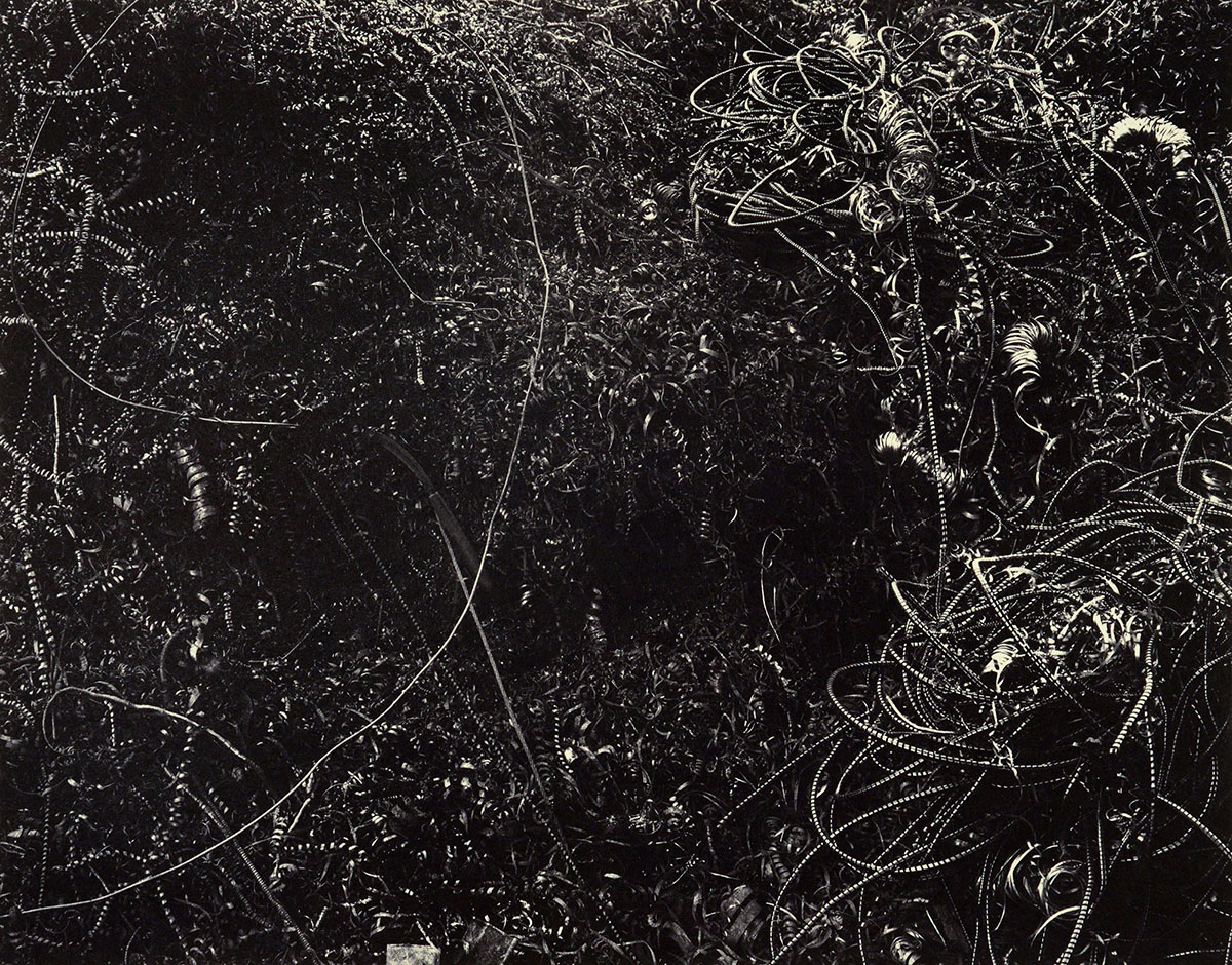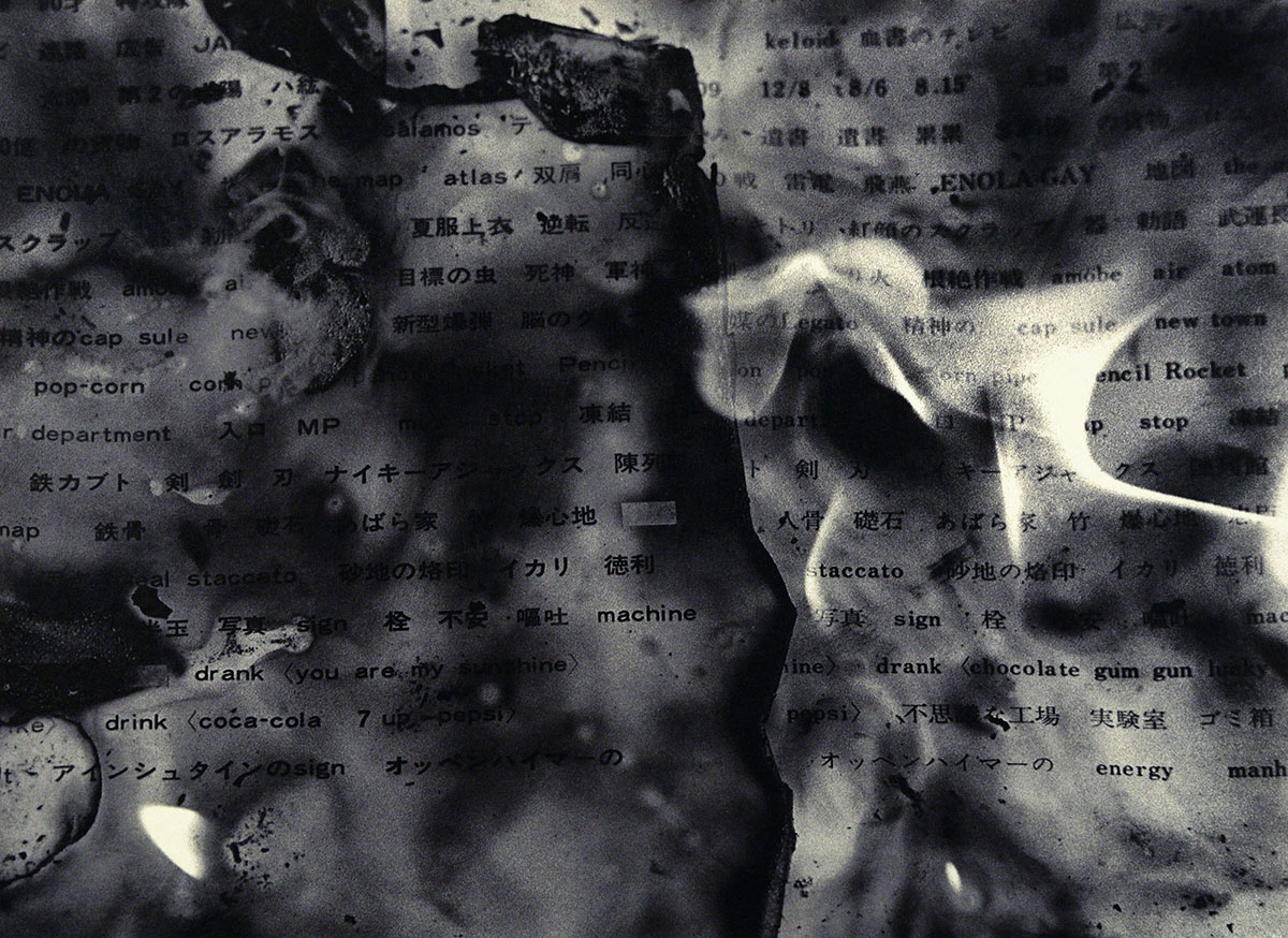1965年に刊行されたデビュー写真集「地図」はセンセーショナルな驚きとともに、川田喜久治の評価を決定的なものにしました。原爆ドームの天井や壁のシミと、戦後20年の復興、経済成長を象徴する「都市で拾い集められた時代の」オブジェを繰り返し見せることで、敗戦という歴史の記憶を記号化しました。