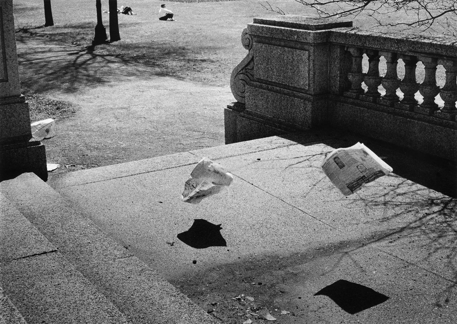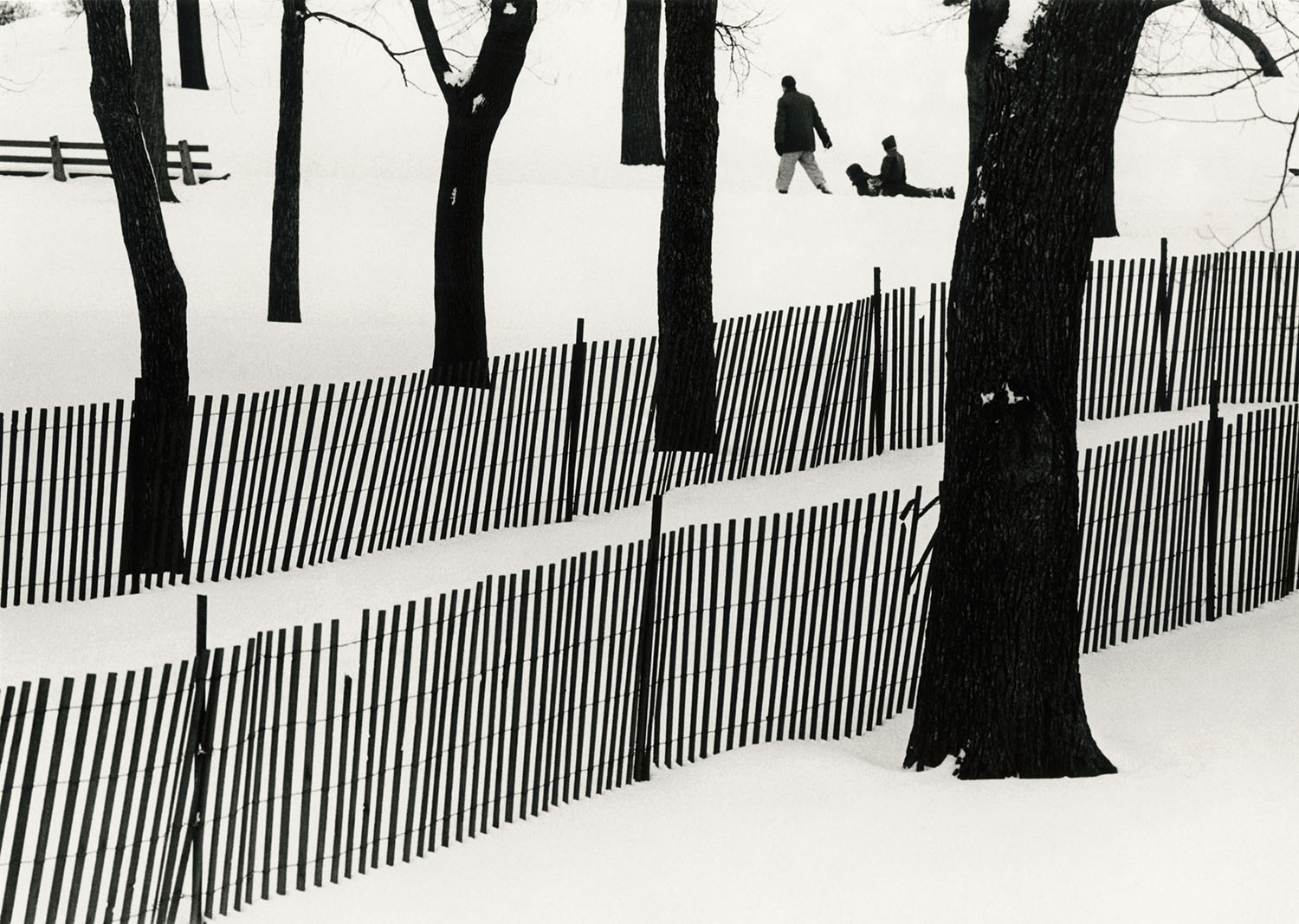 シカゴや東京の街中での一連のシリーズでは、人々の営みや時代を反映しただけでなく、街を捉える視線の中に造形的な被写体を見出しています。また、対象をじっと見つめることで現れるシュールレアリスティックな場面も捉えており、風景を描く線を使い、写真の平面性を特徴的に生かした作品群には、実験的な写真教育を受けた石元の鋭い視線が向けられています。