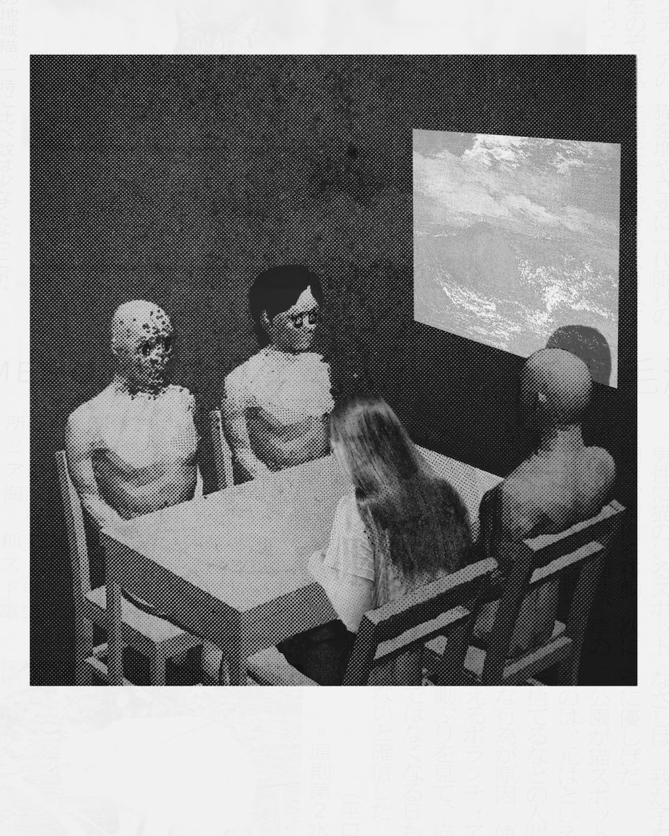 作者はシュルレアリスム、とりわけシュルレアリスム宣言を起草したアンドレ・ブルトンに影響を受けており、写真記事の複写からイメージを制作する際には、即興性や、一貫性の無さを重視しています。抽象的でも比喩的でもなく、目的やコードを失ったような不思議さは、見るものに得体の知れない謎と、静かに立ち止まり思考する時間と余韻とを残します。