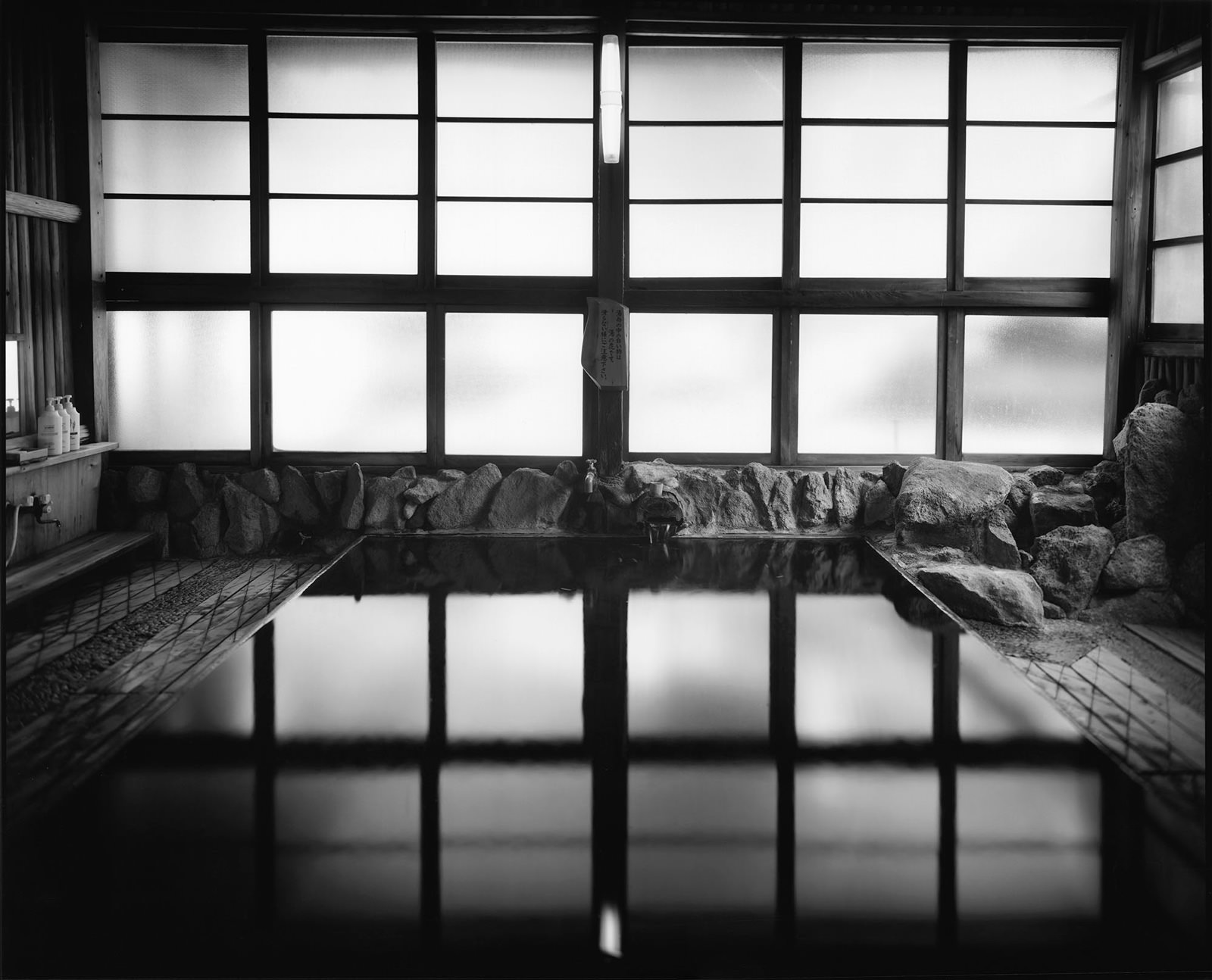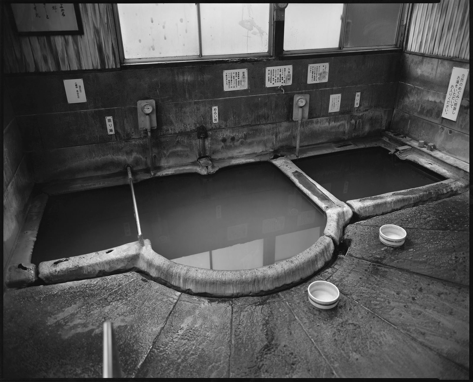 「YUBUNE 湯船」は2010年より撮り始めた新作です。2009年に発表した「SAKURA 桜覧」から使い始めた16X20インチの大型カメラを持ち全国の湯船を訪ねたものです。暗室で水に親しむ写真家が水を「湯水のように使う」という表現があるように「津々浦々で容易く浴することができたのであろうか」という思いから旅立ち、撮影に全国を巡りました。