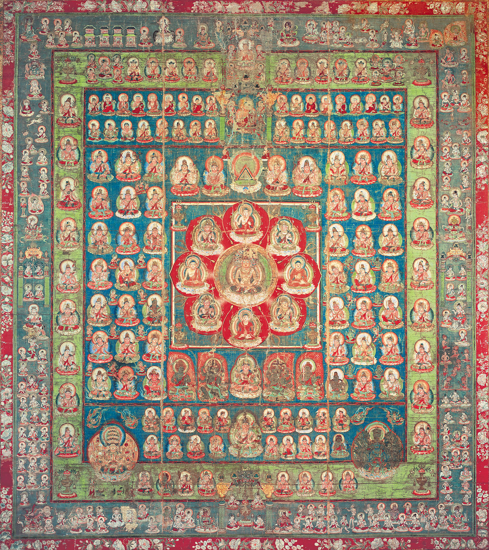 東寺の両界曼荼羅は彩色の両界曼荼羅図としては現存最古のもので、金剛界曼荼羅、胎蔵界曼荼羅の二幅から成っています。国宝でもあるこの両界曼荼羅は、東京国立博物館で開催された「空海と密教美術展」で公開されたことも記憶に新しいことと思います。