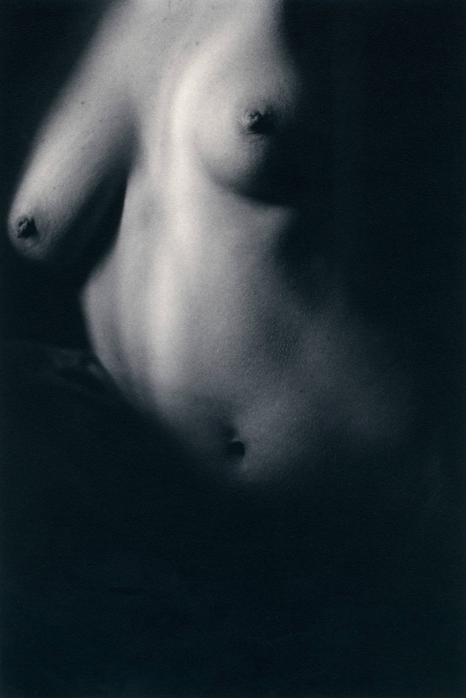 すべての作品は室内で窓からの光や部屋の灯りなどその場の限られた光の下で撮影されています。それが身体の起伏を浮かび上がらせ、濃艶な諧調を生み出しています。また写真家の視線の中心となる浅いインフォーカスからアウトフォーカスへゆるやかに蕩けていく美しさは、まさに写真だから為せる表現だといえましょう。