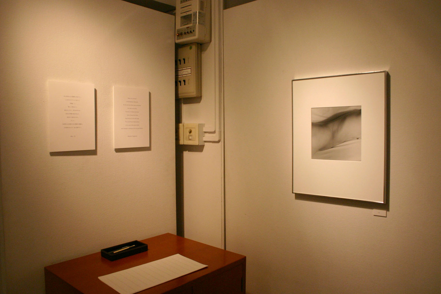 モノクロームの光と影がその存在感を浮き彫りにするという表現方法で撮り続ける杉山の視点は、やがて裸婦に向けられていきました。それは草花を這う幼虫であるかのように静かにそこに存在していて、杉山は、生まれたままの姿である裸婦に生きていることのリアリティーを見出し、写真にしています。これらの一連の作品は、ありふれたものや日常の風景と同様に一定の距離感を保ちながら捉えられていますが、「もの」のリアリティーや「生命」のリアリティーをより一層浮き彫りにし、殻を脱ぎ捨てて、変わっていく姿を象徴しています。作者自身の心象やこれからの生き方とも深く結びついていますが、あくまで日常生活 のなかで写真と向き合うという作者の姿勢に変わりはありません。