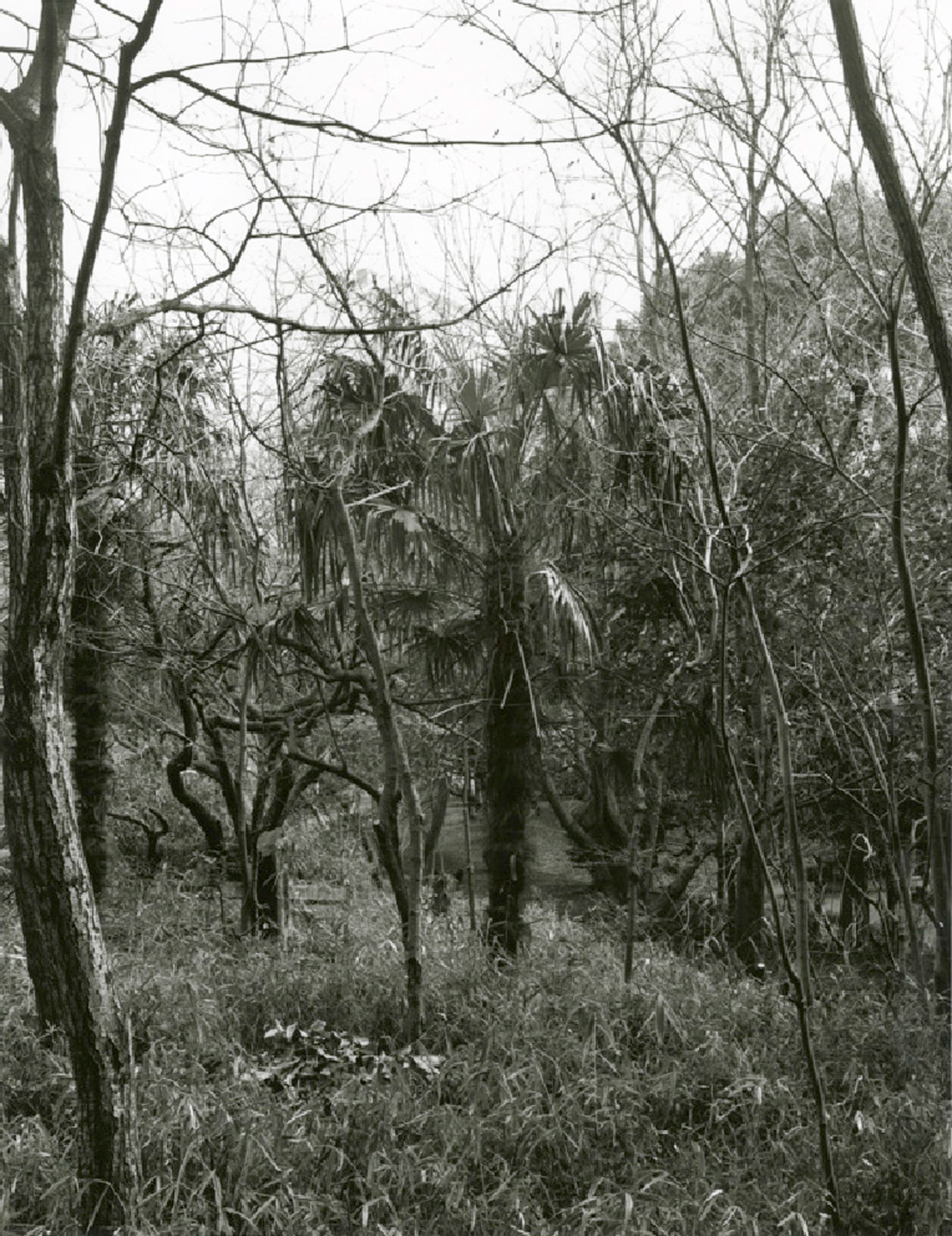 作者の眼に映るのは、「時間によって守られた場所」である。そこには、ふさわしい場所があり、ふさわしい時があり、そこに居合わせた作者がいる。時という大きな流れの中に、確かに存在する場所、確かに存在する作者。木々や草に壁を覆われた佇まい。形あるものの重なりから生み出される確かな空間。これらは誰もが美しいと感じる風景とは異なり、むしろごくありふれた風景でありながら、作者の心の眼が捉えた調和のとれた光景である。言葉で言い表したり理屈をつけるのではなく、自身の直観をよりどころにして、その時に、そこにある、眼に映る光景を写真にしている。