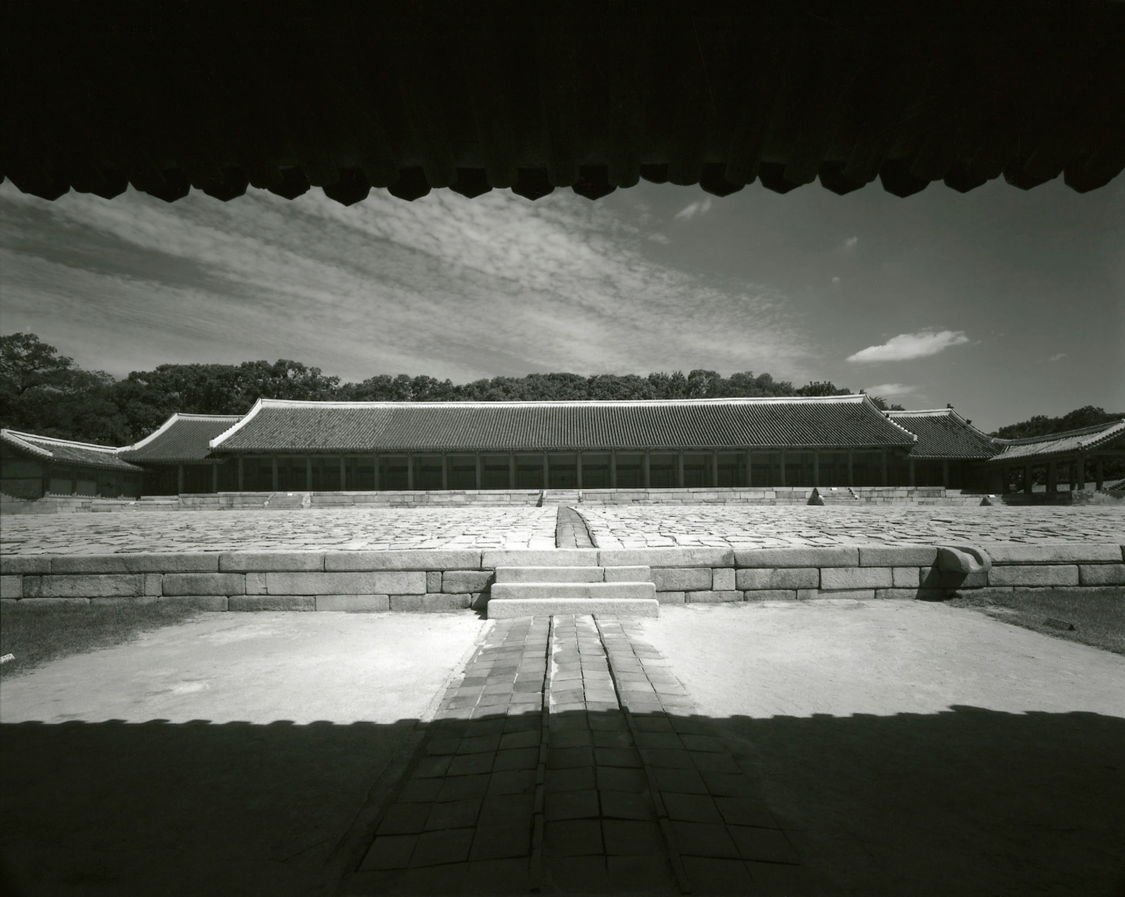 1997年に初めてアジアの近隣の国、韓国のソウルを訪れた作者を待っていたのは、他の国では味わったことのない、何とも言いようのない懐かしさのような印象であり、同時に、学生たちの熱気や街の活気でした。そして、いずれ機会があれば韓国のシリーズを撮影したいと思うようになりました。2000年にその願いが叶い、李氏朝鮮国王と王妃を祀った霊廟チョンミョを撮影した作者は、その後何度か韓国を訪れて、大きな変化をとげていく韓国の「時の遺産」を撮り続けています。