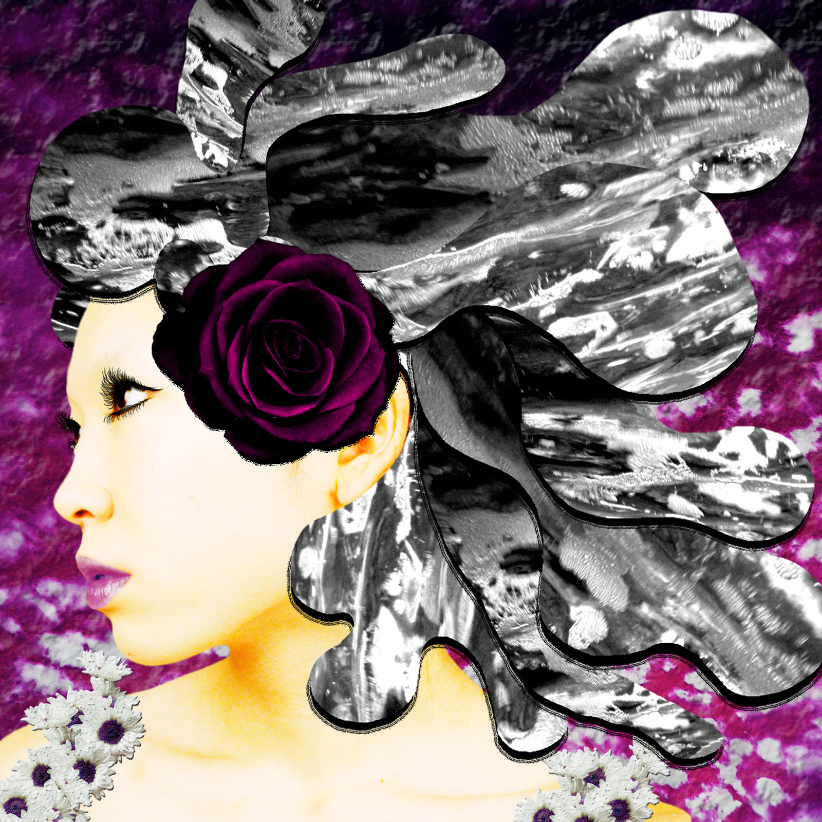 「花」と「セルフポートレート」のデジタル画像をパソコンで自由自在に組み合わせ、変身願望を画面上にのびやかに表している。「女性は何かのきっか けで華麗に変身する時期があるし、それは何度でも訪れると思う。人間は自然界の中の一部であり、私にとって女性とは、華やかで花のように美しく可憐なもの であると思う。」